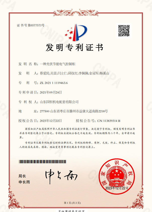 山東國恒機電配套有限公司簡      介 山東國恒機電配套有限公司是一家集新能源、高科技、智能化生產(chǎn)研發(fā)、制造、銷售為一體的綜合性現(xiàn)代化高新技術(shù)企業(yè),公司座落在魯班故里、墨子之鄉(xiāng)滕州,公司始建于2005年,注冊資本1億元,擁有各類中、高級專業(yè)技術(shù)人員100余名。主營業(yè)務(wù)涉及高科技智能電力裝備、新能源儲備輸送,220kv及以下輸變電工程勘察設(shè)計、制造、銷售、安裝、售電和智能充電樁能效運維,并從事生產(chǎn)制造交直流充電樁設(shè)備、成套開關(guān)設(shè)備、各型號高低壓開關(guān)柜、箱式變電站等電氣設(shè)備,是棗莊地區(qū)唯一一家國資入股的新能源高端品牌企業(yè)。公司擁有獨立… 【查看更多】